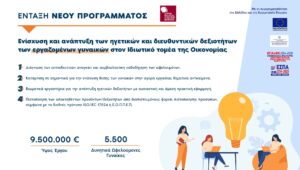 Ανακοινώνουμε το ξεκίνημα ενός νέου έργου για την “Ενίσχυση και ανάπτυξη των ηγετικών και διευθυντικών δεξιοτήτων των εργαζομένων γυναικών στον Ιδιωτικό τομέα της οικονομίας”. (Ε.Π. “Ανταγωνιστικότητα, Επιχειρηματικότητα και Καινοτομία” 2014-2020).…